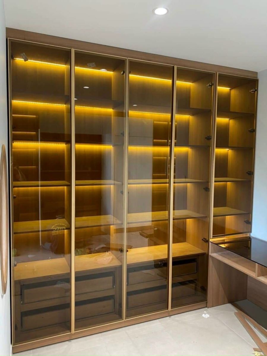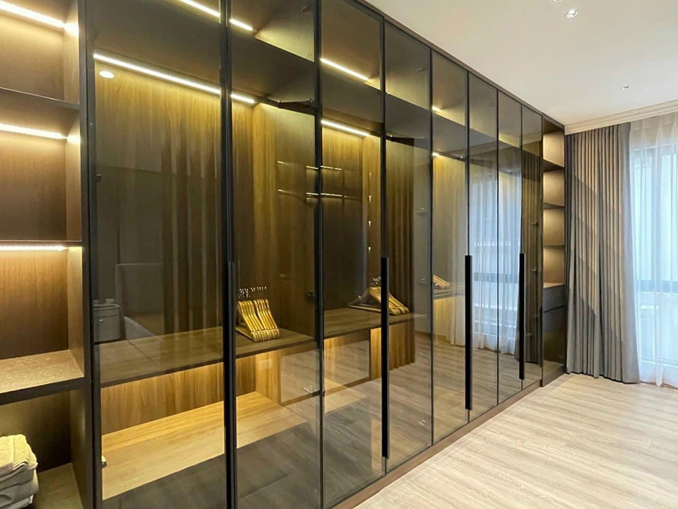 Tủ áo cánh kính cường lực khung nhôm với các lựa chọn: